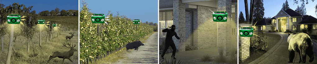 Penggera Kelantangan Kuat untuk Pencegahan yang Dipertingkatkan, Lampu Sorot Berkelip Kuat Menghalang dan Mempertahankan, Jauhkan Tetamu yang Tidak Dialu-alukan dengan Penghalau Haiwan Kami!